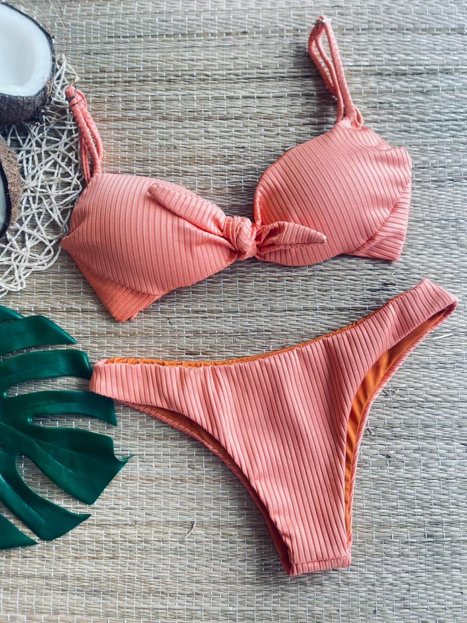 Refresh availabilityFun and flirty coral bikini with lots of options. Choose your coverage with a secure top and adjustable straps. Add a stylish twist with the front knot that can be removed. Removable bust pads included. Classic bottoms for maximum comfort and a flattering fit. Elevate your look with a touch of class.