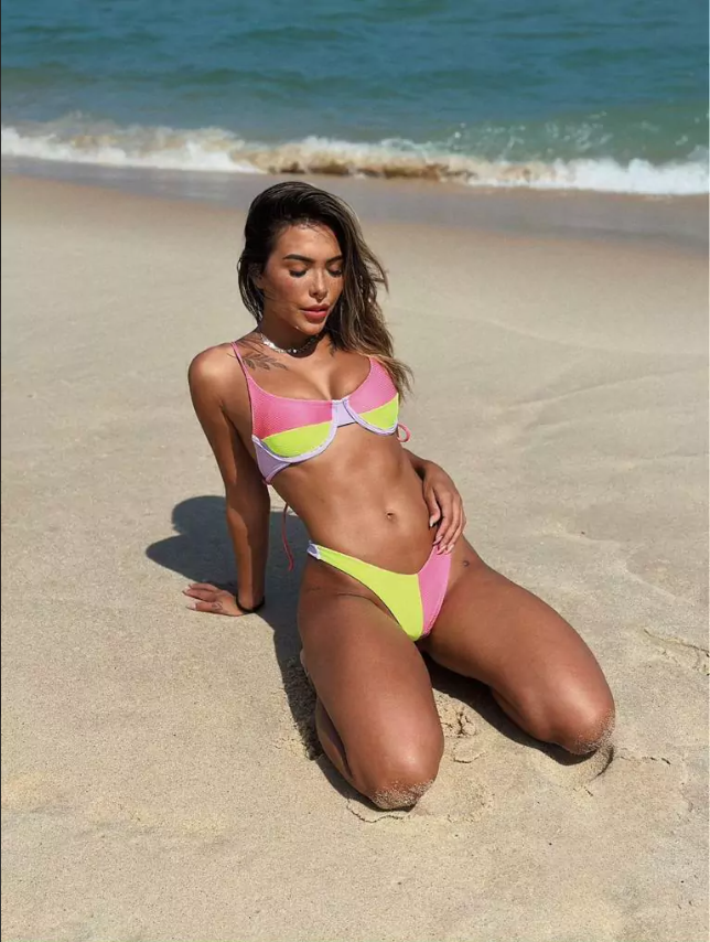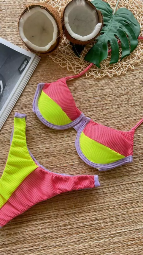 Refresh availabilityLuscious Lycra bikini. Pretty colors for a fun vibe. Offers support and adjustable straps. Unique design creates textured look with embossed fabric, giving it a sophisticated touch. Complements your curves beautifully. (Your bum will thank you.)