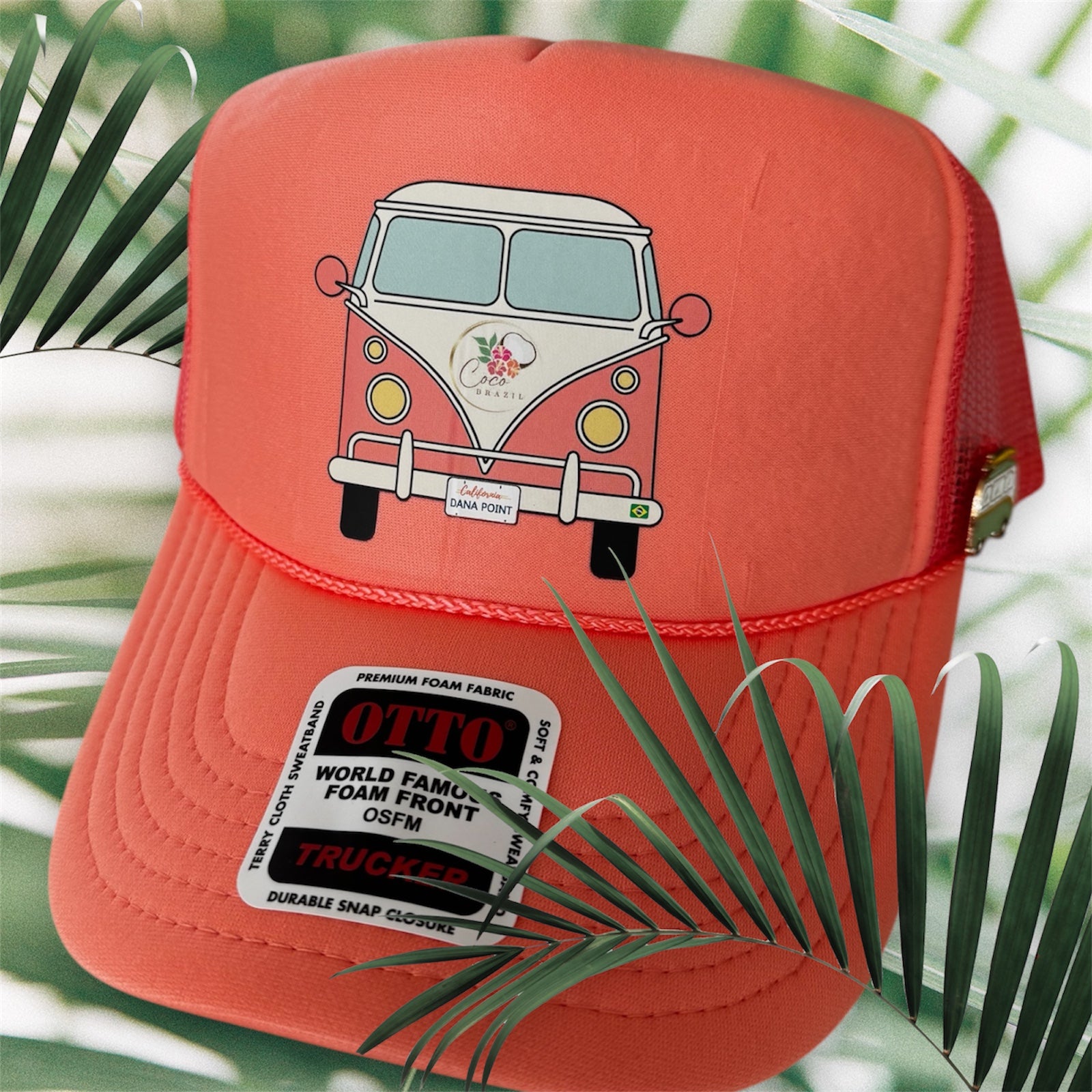 Refresh availabilityCheck out the famous Otto Trucker cap! It's got a fun coral, a mesh snap-back, and a cool digital heat transfer Coco Brazil Bus Logo on the front. You can even show off your love for Brazil with a flag pin on the side. Perfect for beach days, pool days, gym days, or just casual strolls. This hat has got you covered with sun protection and a comfortable sweat band inside for all day wear! Get yours now before they sell out!