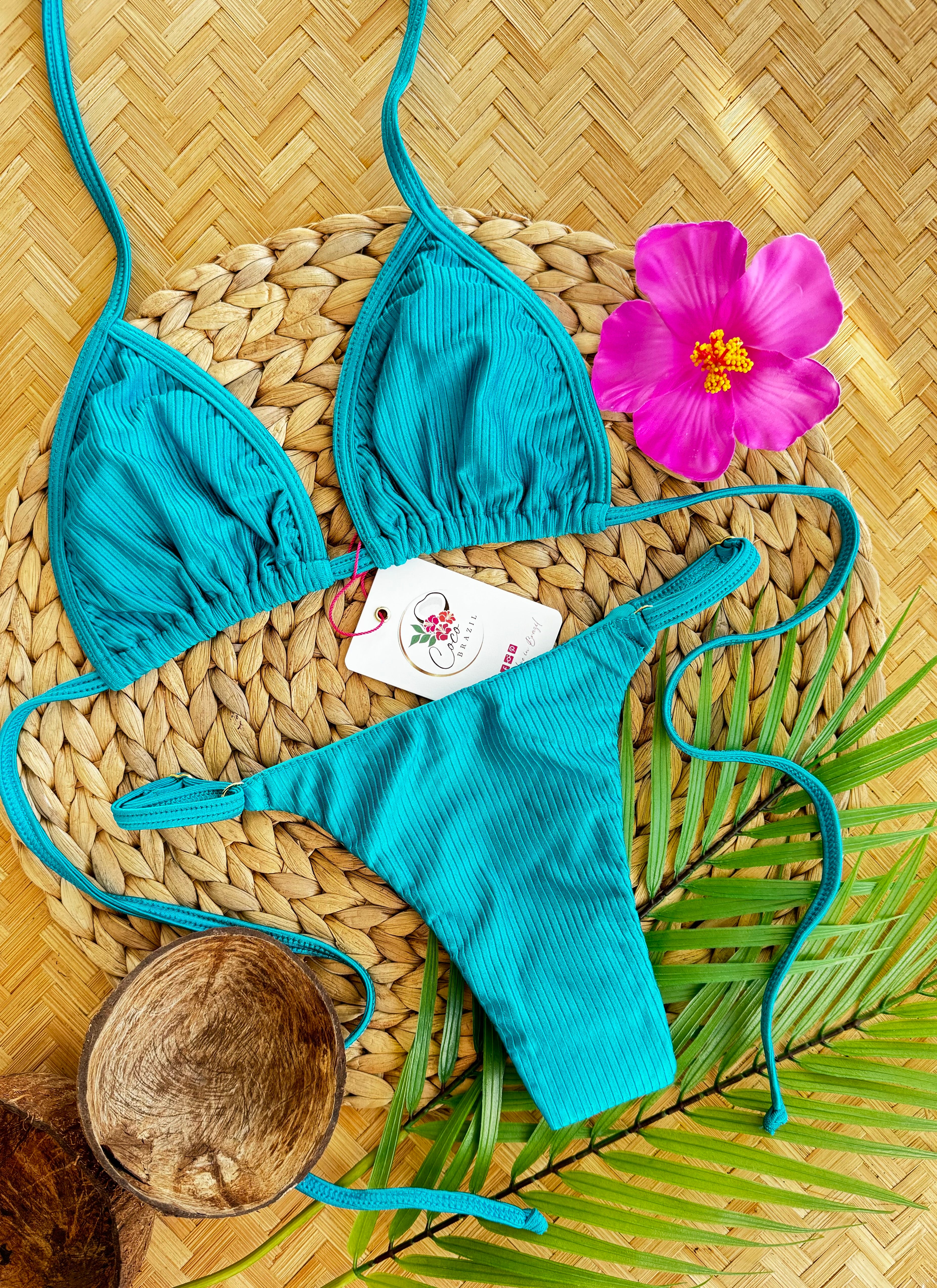 Giovanna Triangle Textured Top + Adjustable Mini Thong Bikini Bottoms