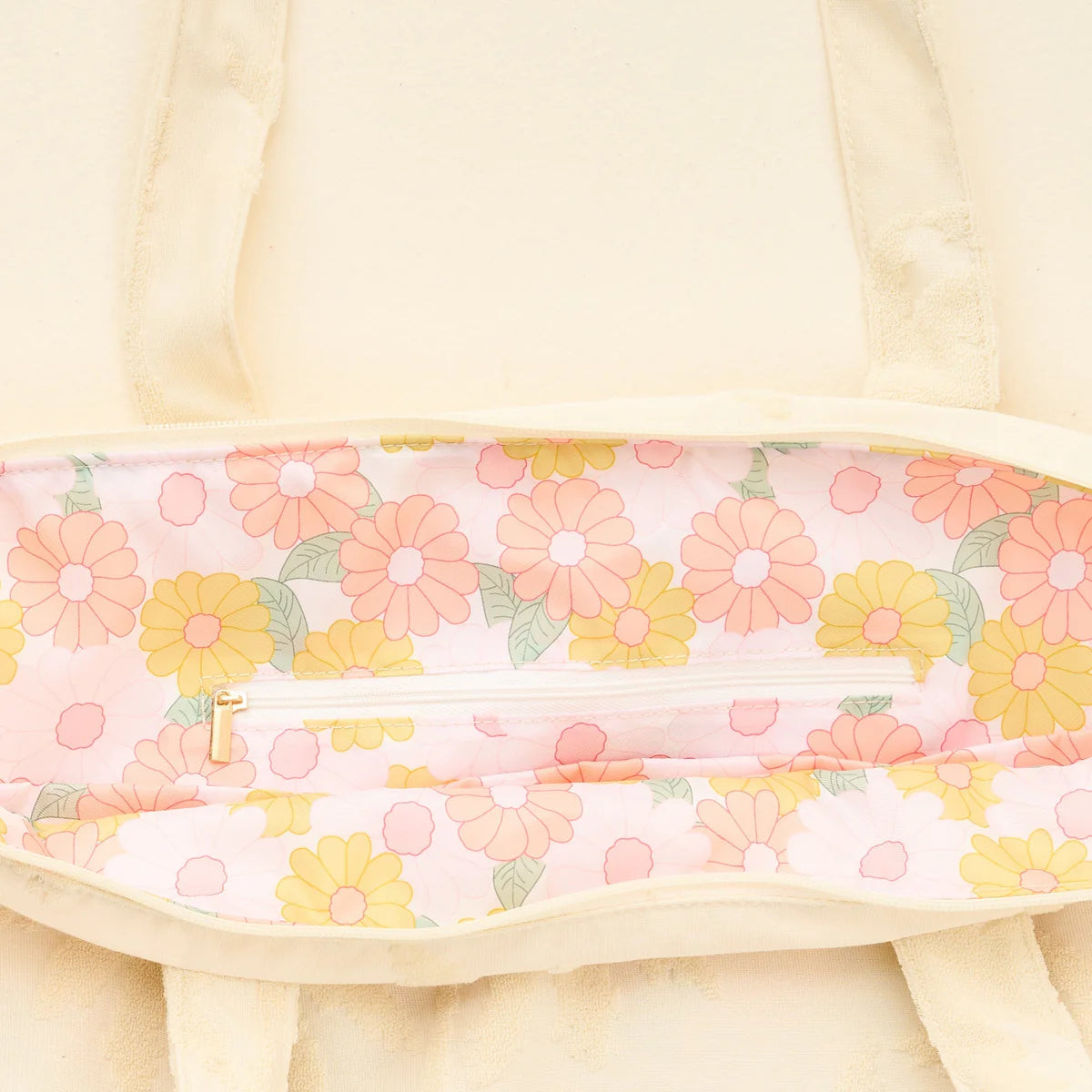 Refresh availabilityGet ready for some serious beach vibes with our Palm Tree Terry Tote Bag! This spacious bag is perfect for packing all your must-haves for a day by the ocean. The cute accents and summer shades will add a fun touch to your sunny adventures, and the terry-cloth material adds an extra level of style and comfort. Check out the adorable inside lining!